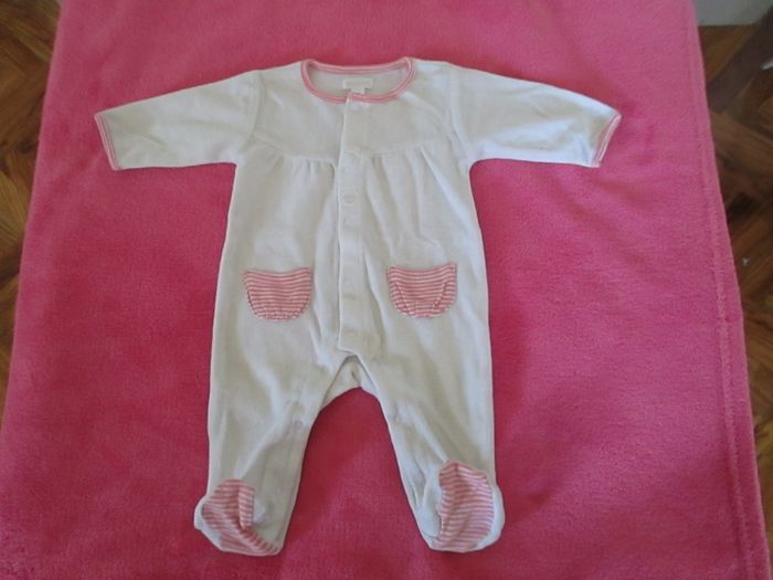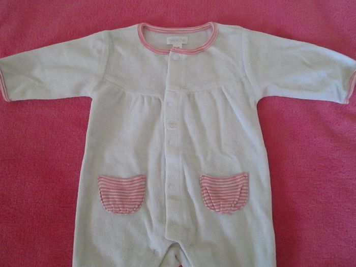 Vends pyjama blanc poches roses. Taille 1 mois. Excellent état. Pour plus de choix, allez consulter mes autres annonces.