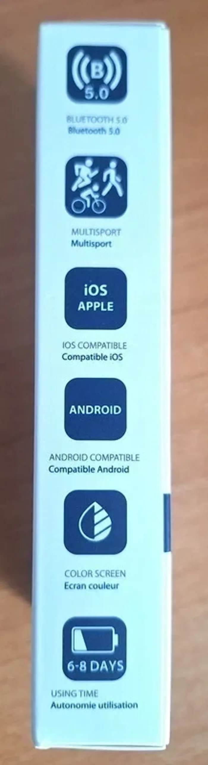 MONTRE CONNECTEE COACHING - MUTLI SPORT BLUETOOTH 5.0 JUSQU'A 6-8 JOURS SELON UTILISATION TEMPS DE CHARGE : 2 H COMPATIBLE ANDROITE 6.0 COMPATIBLE IOS 8.2 Batterie Li-Ion 220 mAh Alimentation DC5V 1A Accessoires : -Câble de charge -Manuel d'utilisation NEUF DANS SA BOÎTE D'ORIGINE !
