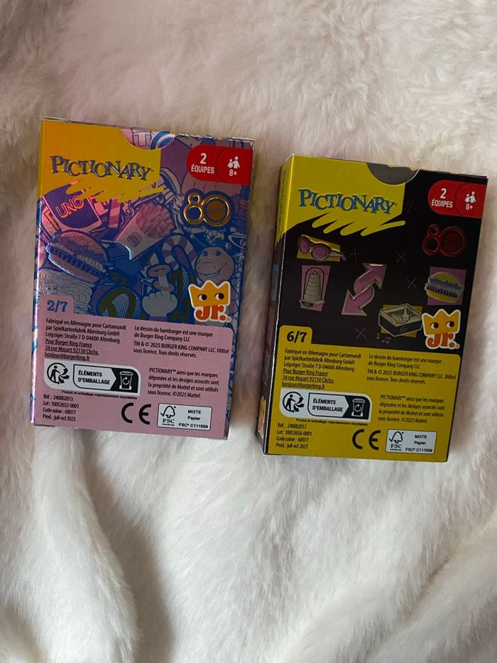 Lot de deux jeux de cartes Pictionary Barbie Burger King