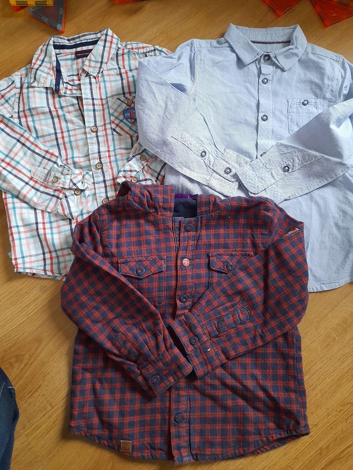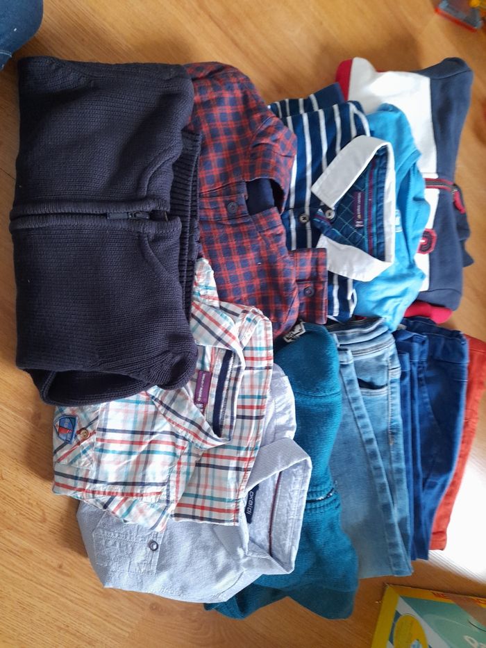 Lot 4 ans composé de: - 3 pantalons dont 1 chaud - 3 gilets dont 1 chaud - 1 polo - 1 t shirt - 2 chemises - 1 surchemise ( manque la pression du haut mais ne gêne pas) Le tout en be voir tbe selon vos exigences Le tout 32 euros