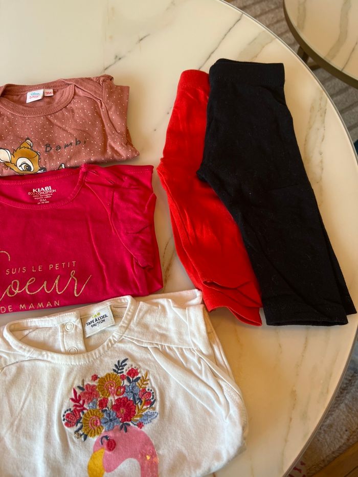 3 t-shirt manches longues 1 t-shirt manches courtes 2 bodies manches longues 2 leggings Kiabi, gemo, tape à l’œil