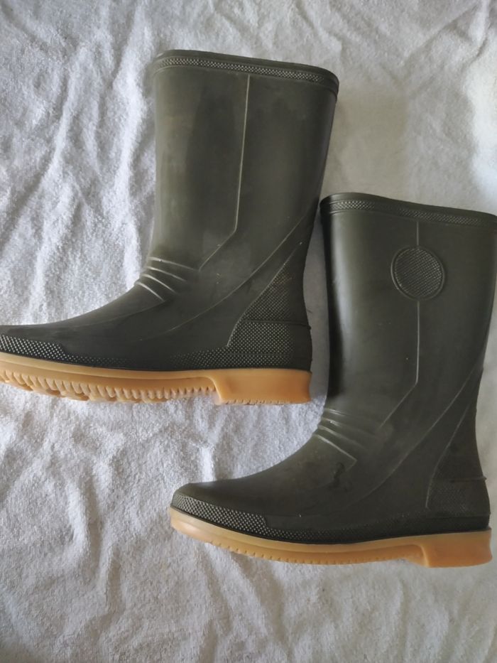 Je vends cette paire de bottes pour enfant en kaki. - Type de produit : Bottes - Univers : Enfant - Pointure : 37 - Couleur : Kaki - Matière : Accessoires N'hésitez pas à me contacter pour plus d'informations !