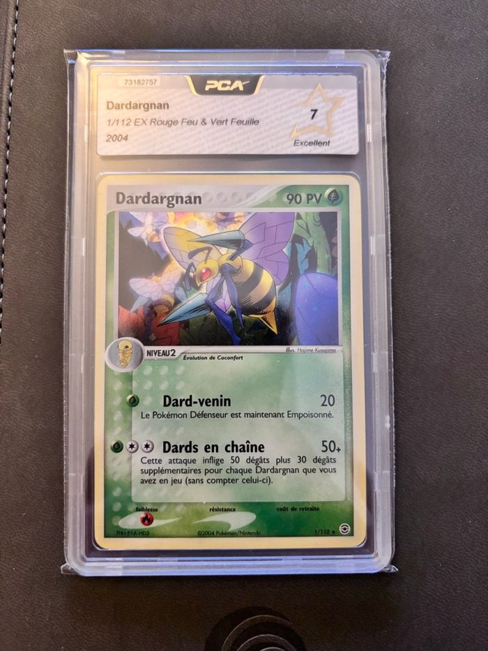 Czrte pokémon holo dardargnan 1/112 ex rouge feu et vert feuille, bloc ex 2004, carte gradée pca 7.