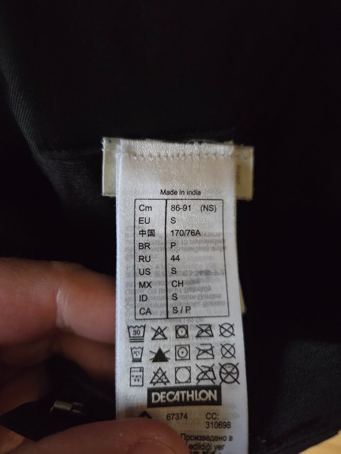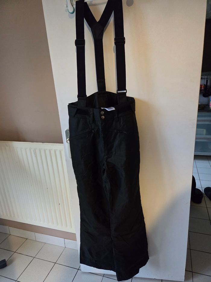 Pantalon de ski Decathlon avec 2 poches et des bretelles, réglage à la taille par scratchs. La longueur des jambes est réglage également avec des pression à l'intérieur. En tres bon état excepté le bas du pantalon qui est un peu abîmé car mon fils ne réglait pas la longueur et marchait dessus.
