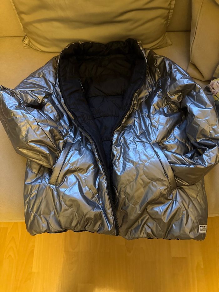 Je vends ce blouson IKKS taille 14 ans Un modèle pratique et stylé puisqu il est réversible Côté pile classique noir avec écusson brodé sur la poitrine côté face gris métallisé urbain et chic Très peu porté , zip central fluide pièce de qualité