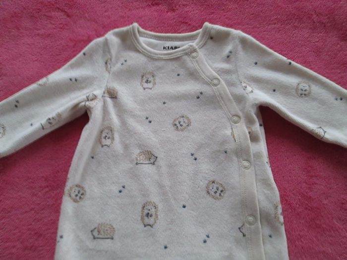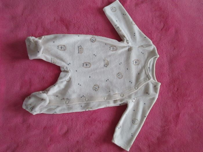 Vends pyjama beige motifs hérissons. 75 % coton + 25 % polyester. Taille 1 mois. Comme neuf. Pour plus de choix, allez consulter mes autres annonces.
