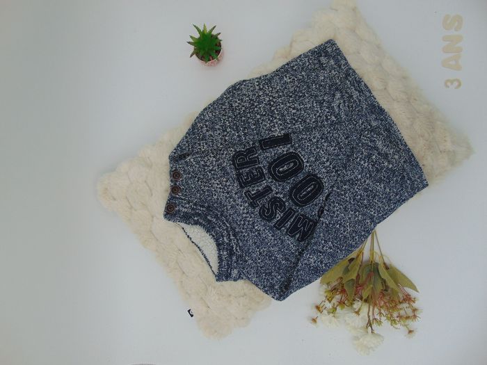 - Chaud - Col montant - Moumoute sur le col - Couleur bleu moucheté - Ecriture bleue marine " mister cool" - Aucune tâche ni trou
