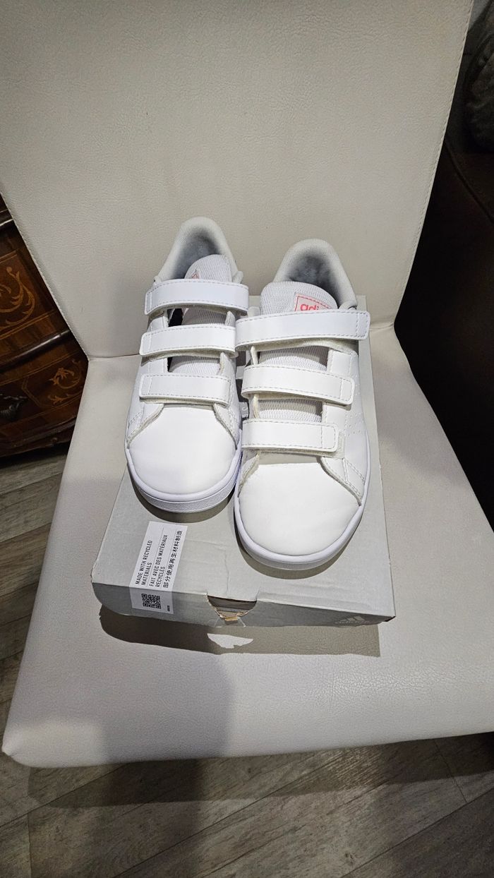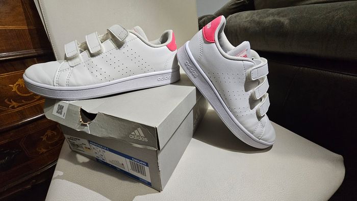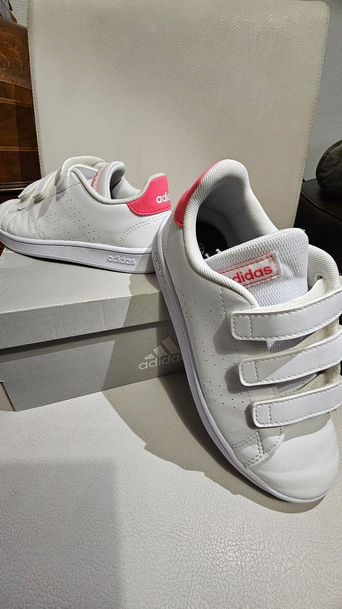 Baskets ADIDAS Advantage CFC de couleur blanc et rose Taille 34 en parfait état. Aucun défaut et pas assez porté donc état impeccable. Agréable pour une petite fille .