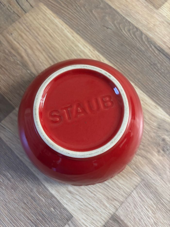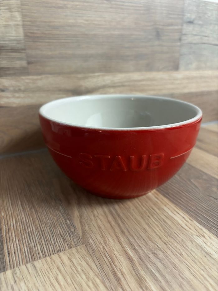 Ces 4 grands bols STAUB sont en bon état : ni fêlés, ni cassés : un micro manque a la base d’un des bols (voir photos: à peine visible) Idéal pour petit déjeuner ou pour un potage Dimensions : - diamètre base : 8 cm - diamètre haut : 14, 5 cm - hauteur : 8,5 cm