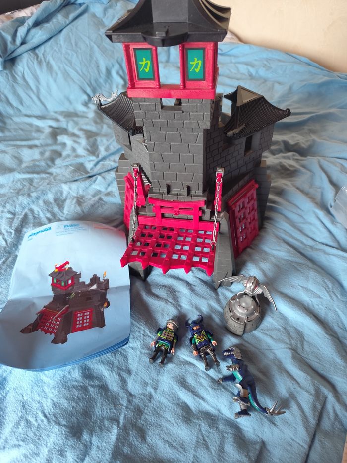Château de Ninjago Playmobil Livré avec 2 chevaliers et un dragon 🐉 et l'échelle Il manque quelques pièces mais n'empêche pas de jouer avec Avec la notice N'hésitez pas à regarder mon dressing pour faire un lot