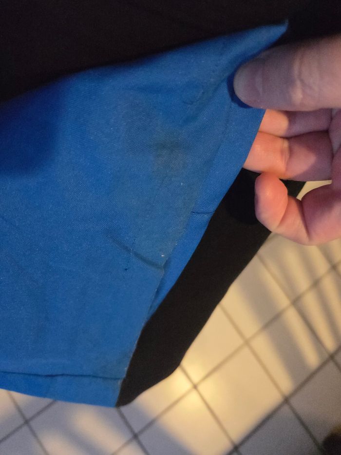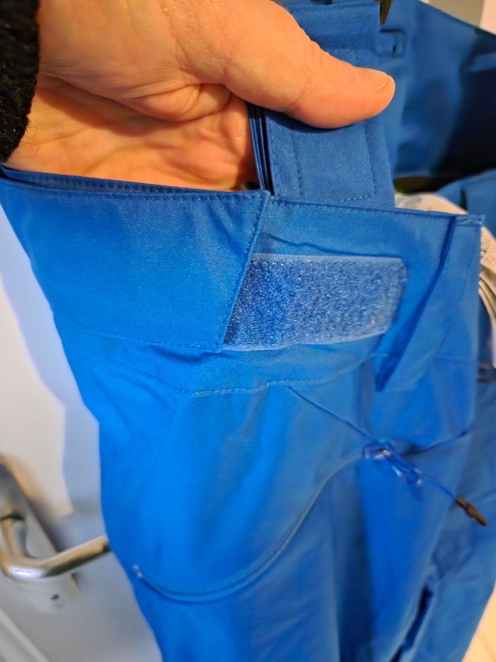 Pantalon de ski bleu avec bretelles, 2 poches fessier doublé micro polaire. Réglable à la taille par scratchs. La longueur des jambes est réglage également a l'intérieur avec des pressions. En très bon état excepté le bas de la jambe gauche qui est un peu abîmée et tachée, voir photos jointes.