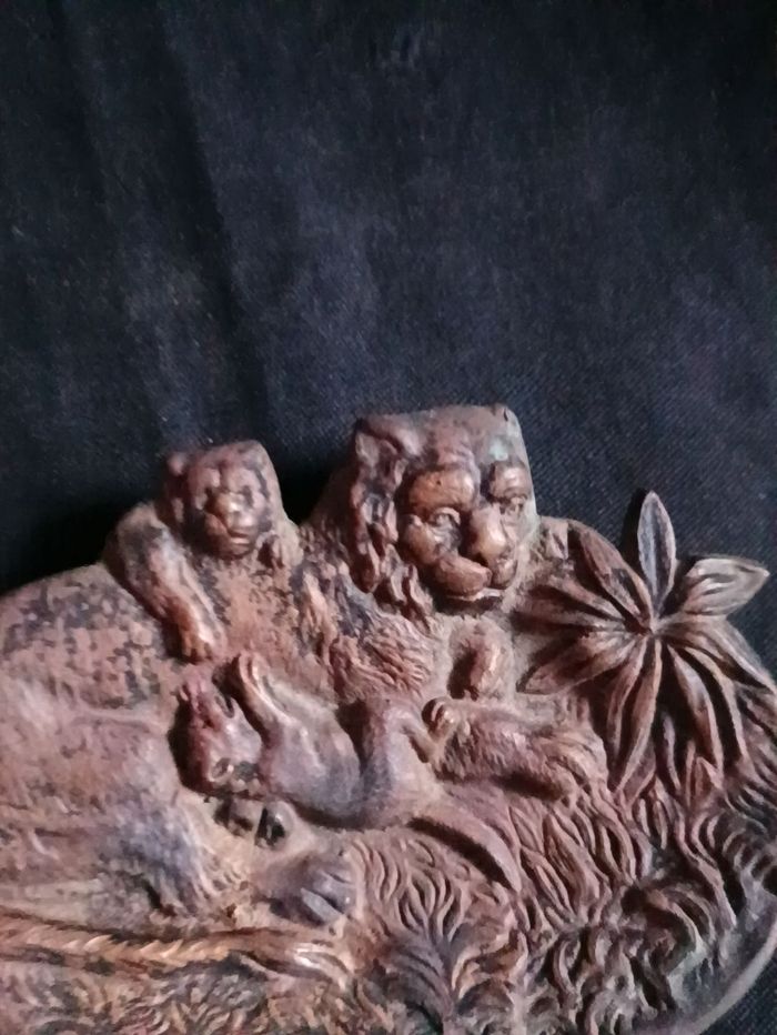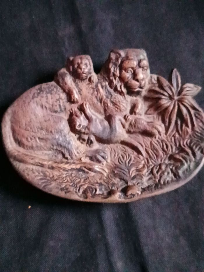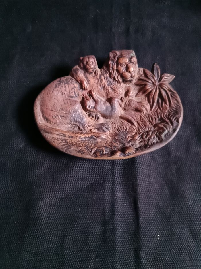 Vide poche en cuivre sculpté lionnes 11 cm x 8 cm en état cf photos