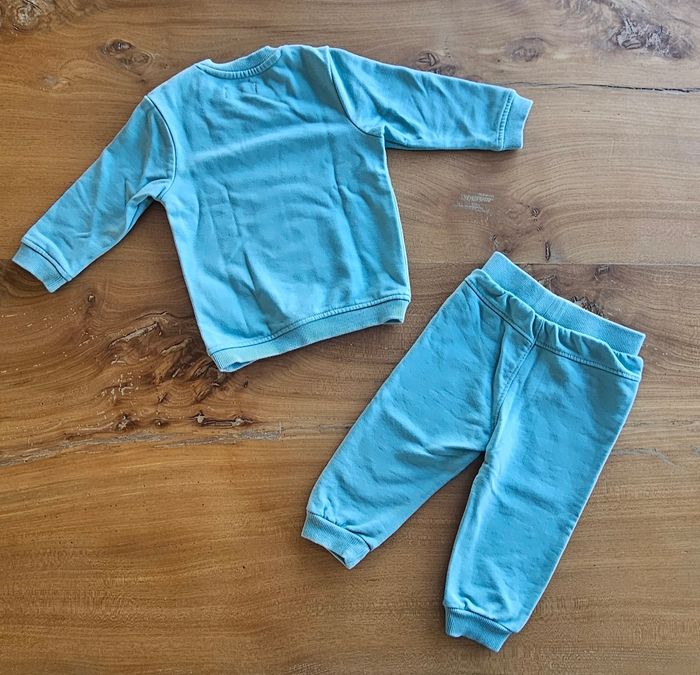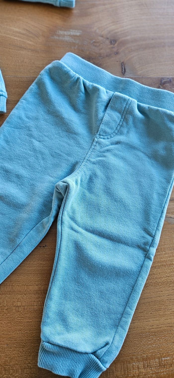 Ensemble bébé garçon : • Pull bleu ciel, dessin brodé sur le devant. Ouverture pressionnée sur l'épaule. • Jogging bleu ciel. Élastique à la taille et aux chevilles. Porté mais reste en très bon état. Aucune tâche, ni trou 👌