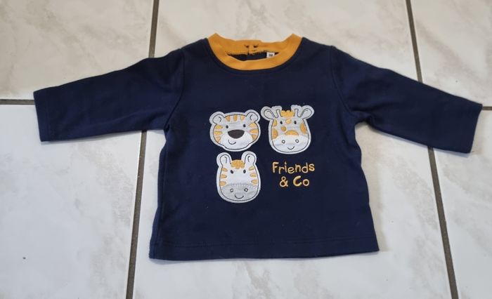 haut manches longues garçon Couleur bleu marine et orange taille 3 mois très bon etat #hautgarcon #hautbleumarine3mois #taille3mois #garcon3mois #bebegarcon3mois