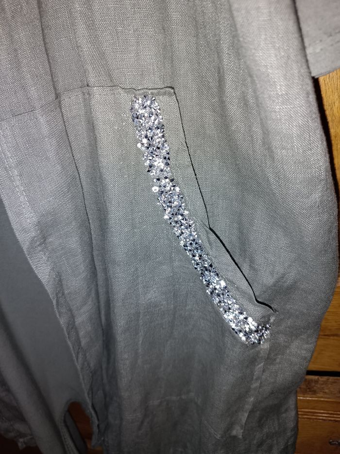 Longue veste kaki, en coton et lin, fabriquée en italie Strass sur les poches, manches rétractables, capuche Excellent état