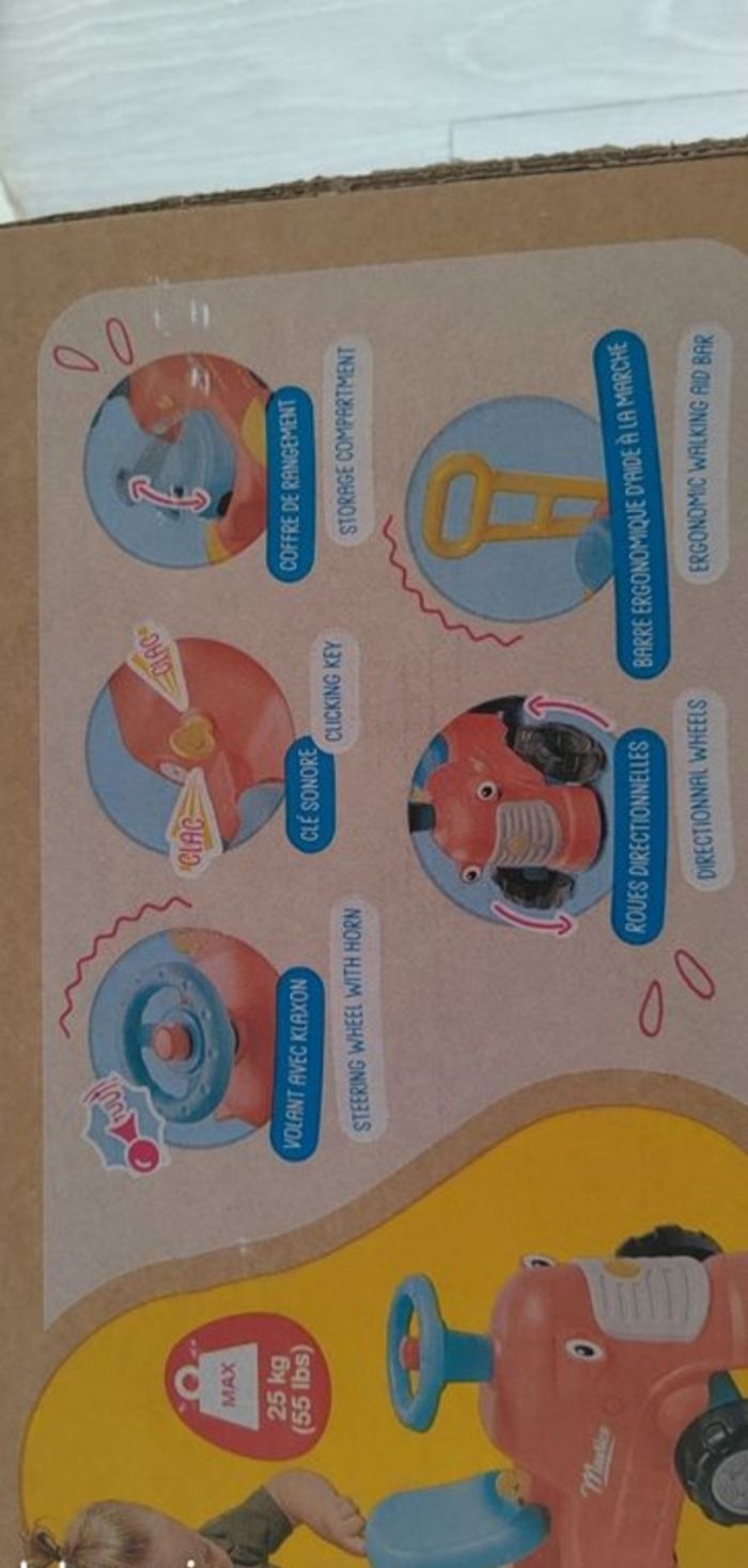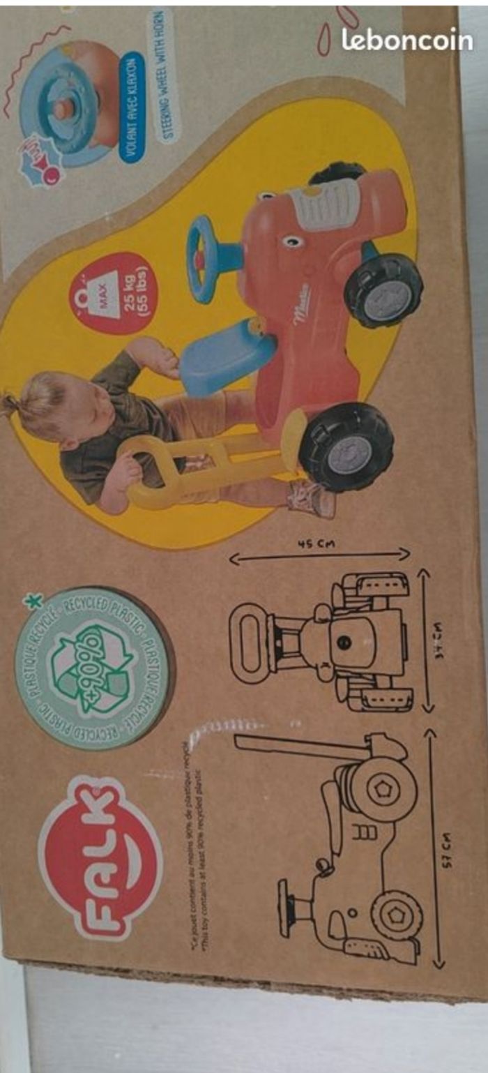 Je vends ce porteur bébé de la marque Falk, un jouet d'éveil idéal pour les tout-petits. - Type de produit : Jouet d'éveil - Marque : Falk - Âge recommandé : De 12 à 36 mois - Fonctionnalités : Véhicule à pousser avec siège pour bébé, sons et lumières État neuf dans l'emballage d'origine jamais ouvert ni servit Jusqu'à 25 kilos