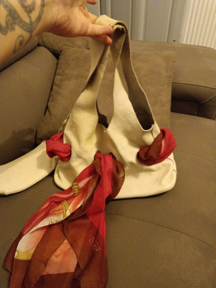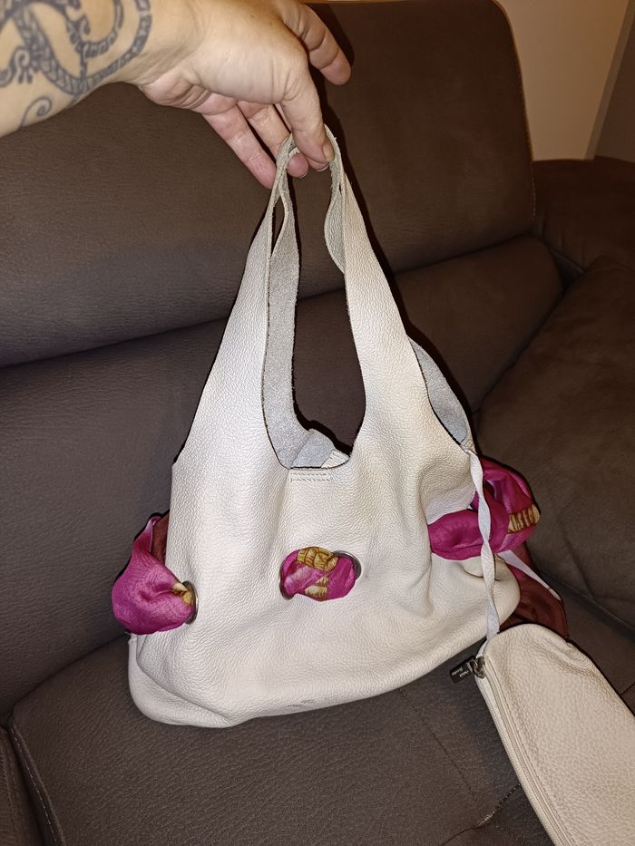 Sac a main cuir, blanc cassé Très original avec son foulard intégré Porte monnaie inclus