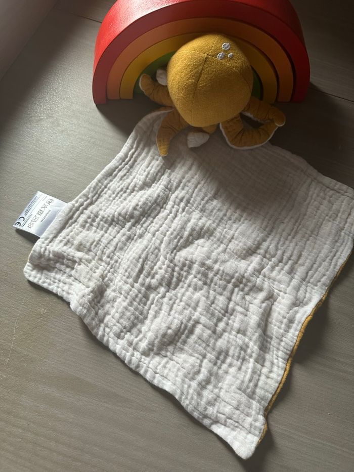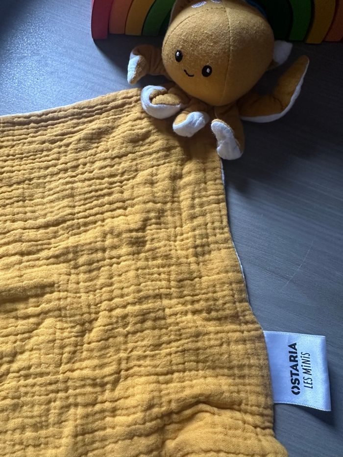 Doudou Pieuvre Poulpe tissu lange blanc jaune moutarde OSTARIA - photo numéro 1