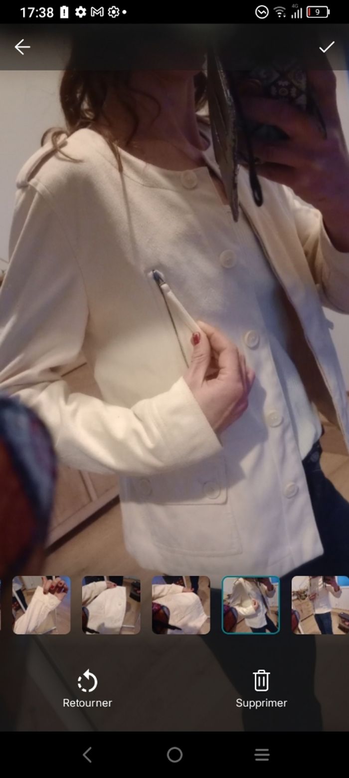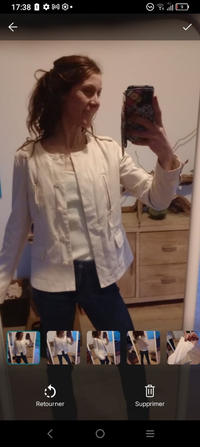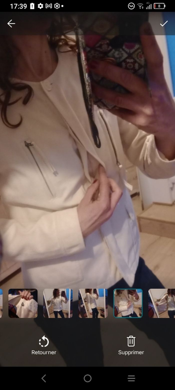 Style Chic & Moderne 💞 Elégante veste structurée de la marque Camaïeu, de couleur rose pâle nude. Parfaite pour la mi-saison ou pour compléter une tenue habillée. Coupe droite et courte, style officier moderne. Fermeture : Boutons sur le devant avec rabat cache bouton Détails extérieurs : Deux poches poitrine avec fermeture éclair décorative. Deux poches basses plaquées avec rabats boutonnés. Pattes d'épaules boutonnées. Manches longues avec finitions boutonnées aux poignets. Composition : Extérieur et doublure 100% Polyester. Tissu avec une légère texture type "peau de pêche" ou suédine fine, très doux au toucher. Épaule 38 cm longueur 62 cm aisselle 46 cm #calomomi_femme38 #Camaieu #VesteFemme #VesteEcru #StyleOfficier #ModeChic #VesteMiSaison #TailleM #VesteBlanche #WorkingGirl #LookModerne