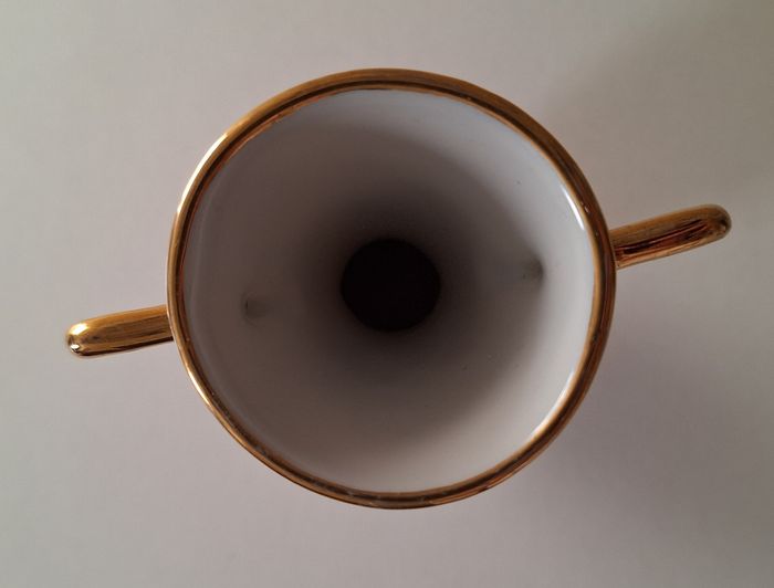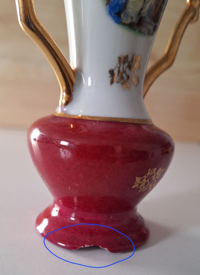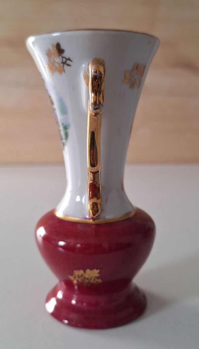 Petit vase en porcelaine blanc, bordeaux et doré - photo numéro 5