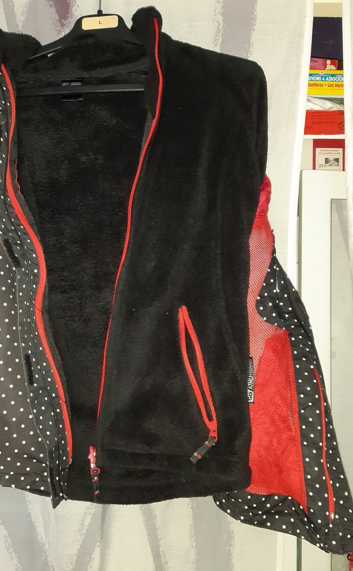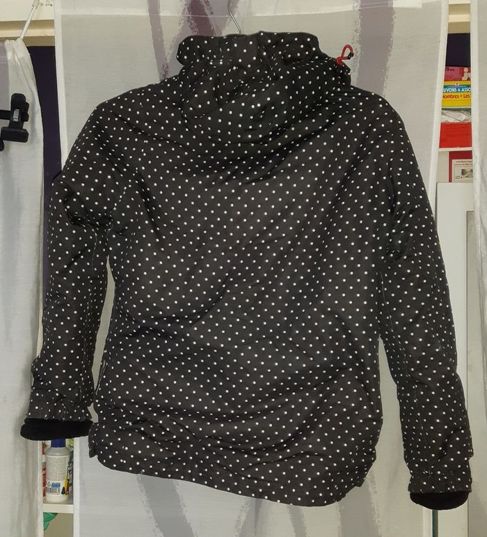Manteau d'hiver fille Taille 14 ans GO Athli-Tech Noir à poids blanc Polaire amovible Un peu de frottement aux manches (voir photos) Un peu de peinture enlevée au niveau de la fermeture éclair (voir photo) Très bon état