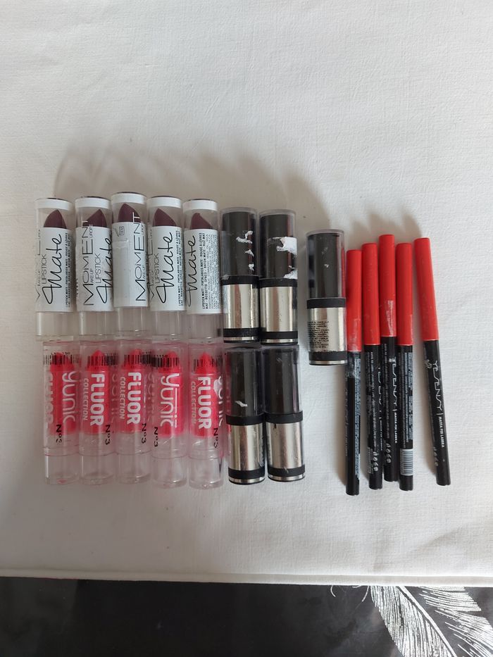 Lot 1 lèvres, comprenant 5 rouges à lèvres rose fluo 5 rouges à lèvres Moment 5 rouges à lèvres sans marque 5 crayons à lèvres Yesensy rouge Le tout neuf