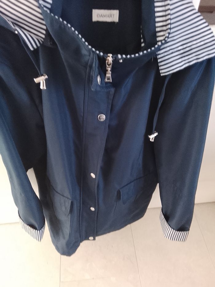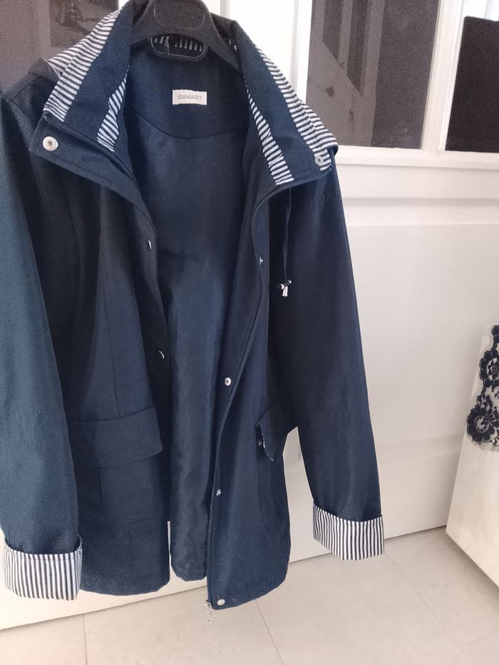Parka à capuche et une poche de chaque côté. La capuche peut s enlever. Étiquette coupée mais c est du 44