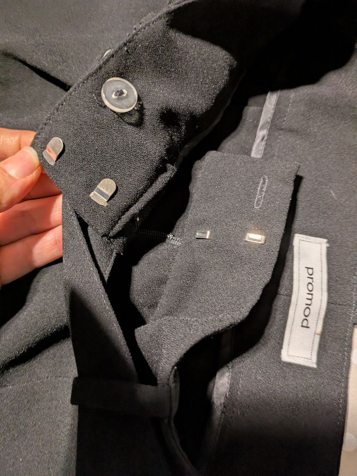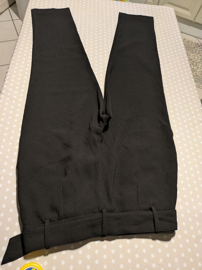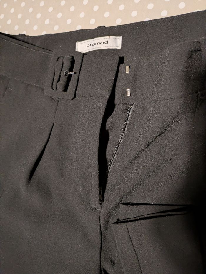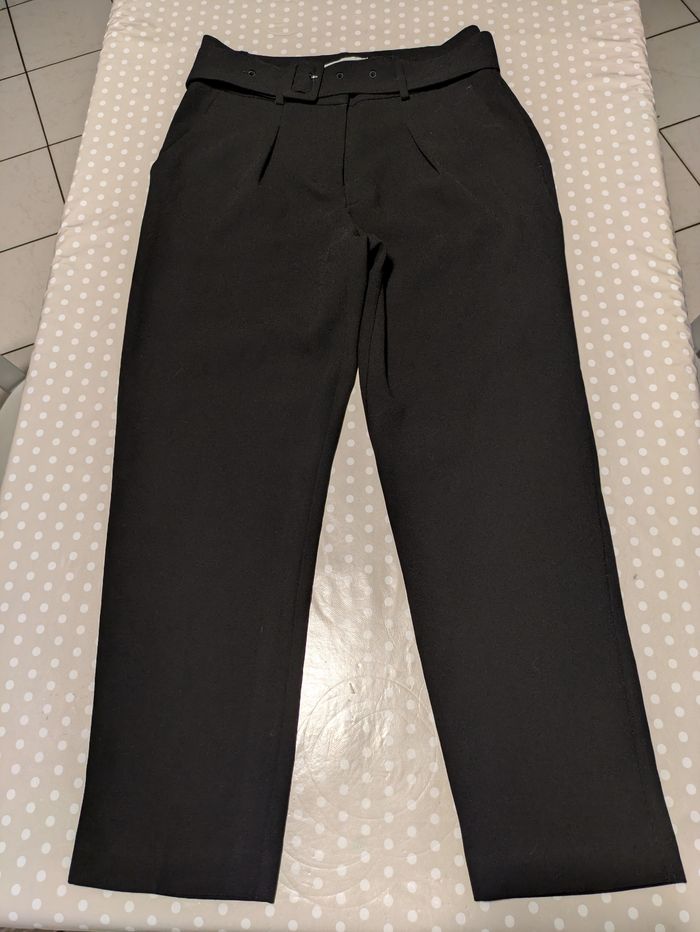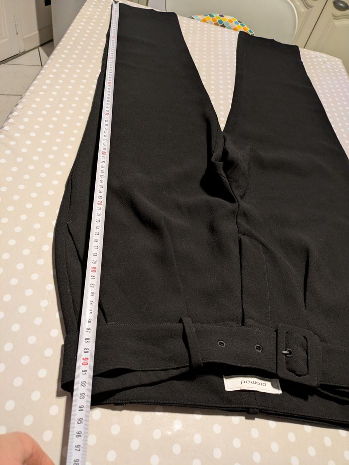Pantalon Promod porté 1 fois taille 38 mais étiquette coupée. Avec pinces devant. Ceinture amovible réglable. Fermeture par accroches metal. Dimensions visibles sur les photos. Réductions sur les lots activées. A disposition pour toute question.