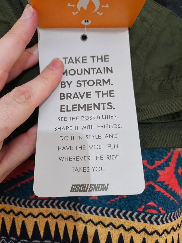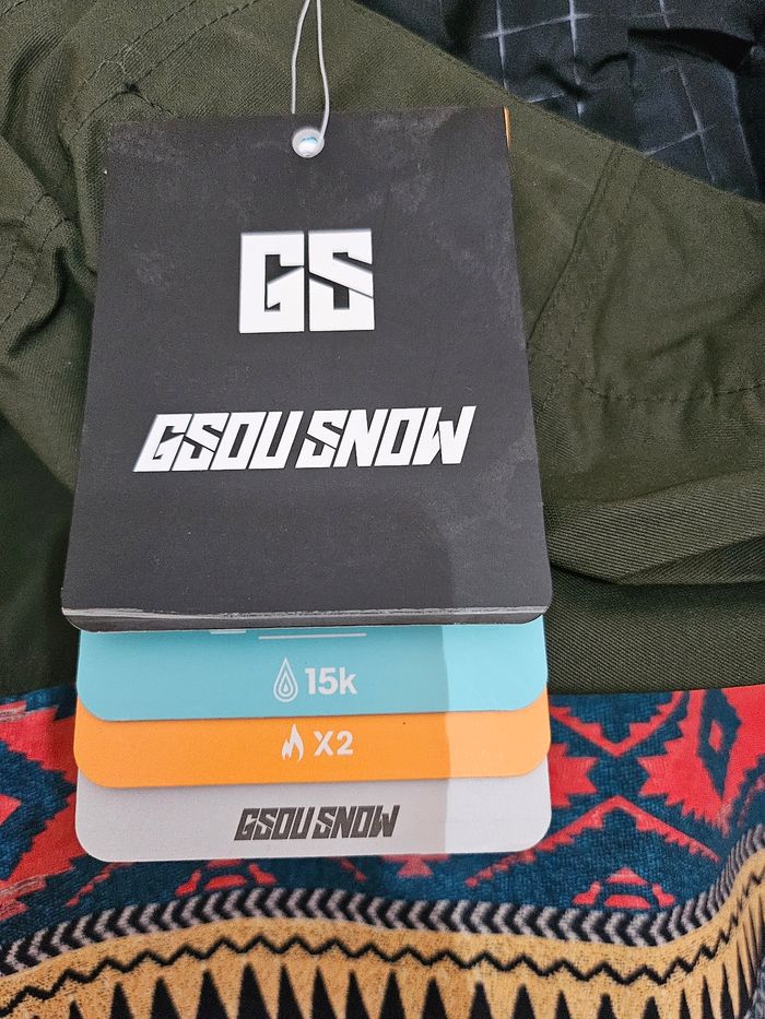 Très belle veste de ski verte foncée à motifs aztecs, neuve avec étiquette Gsou Snow, taille S 3 poches zippées extérieures + 2 poches a scratch, jupe pare neige (ceinture), mini poche intérieure a scratch, waterproof & Keep Warm Valeur 170€, vendue 60€