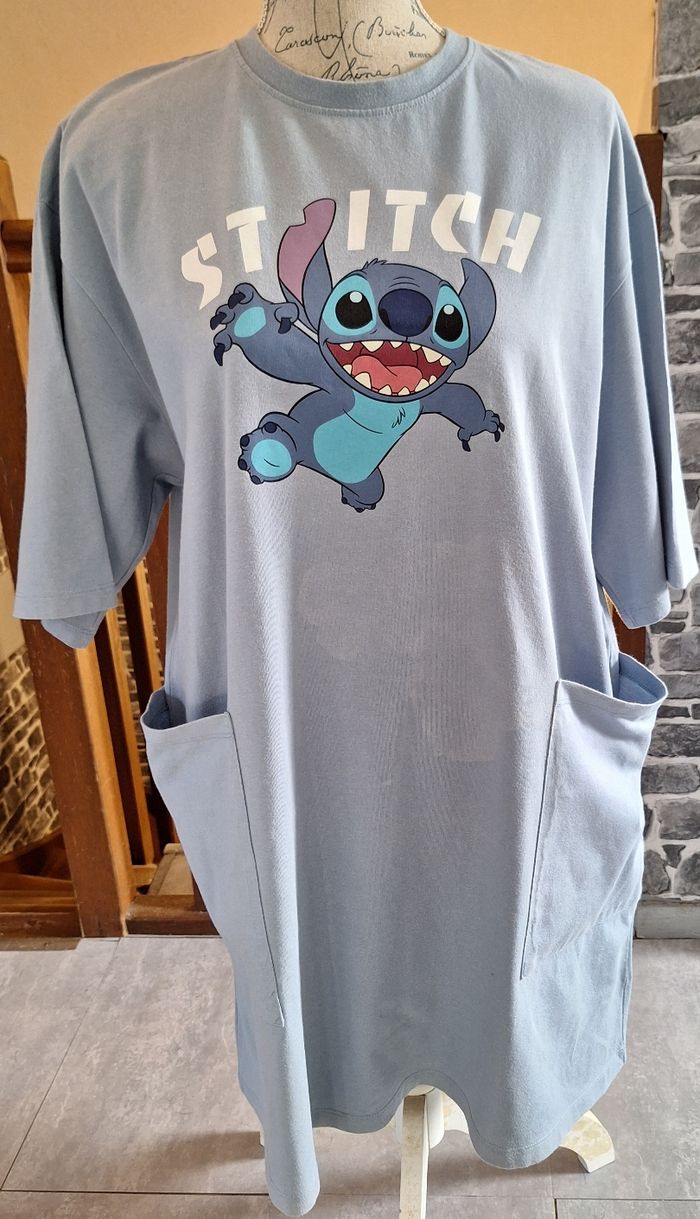 Chemise de nuit bleu ciel Stitch à grandes poches - photo numéro 1