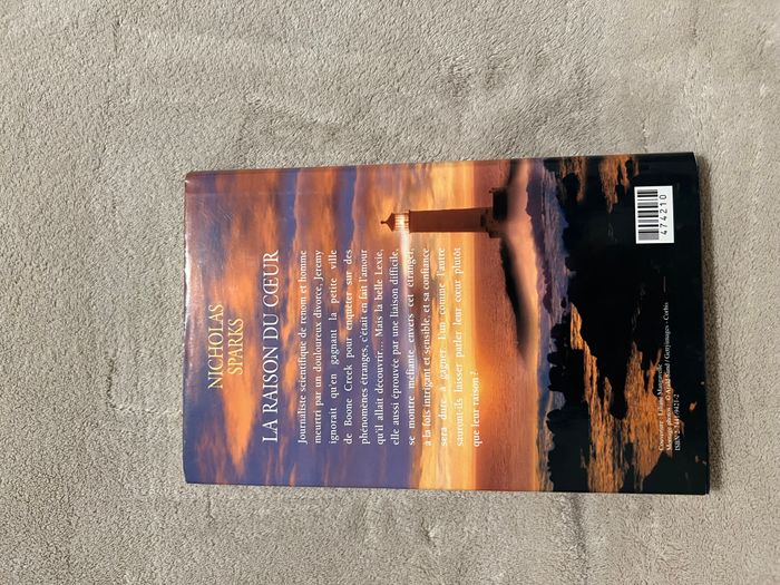 Livre – La raison du cœur – Nicholas Sparks (France Loisirs) Genre : Romance / Drame Résumé : Theresa, journaliste, découvre une bouteille échouée sur la plage contenant une lettre d’amour bouleversante. Touchée par ces mots, elle décide de retrouver l’auteur de la lettre. Sa recherche la mène jusqu’à Garrett, un homme marqué par la perte de la femme qu’il aimait. Entre eux naît une relation sincère, fragile, faite d’espoir, de souvenirs et de secondes chances. 📏 Merci de bien vérifier les informations et l’état à l’aide des photos, pour éviter toute mauvaise surprise. 👉 N'hésitez pas à regarder mes autres annonces pour grouper vos achats 😉 Une réduction automatique est appliquée pour les lots. Je n'accepte donc pas d'offres supplémentaires sur les articles bénéficiant déjà d'une remise.