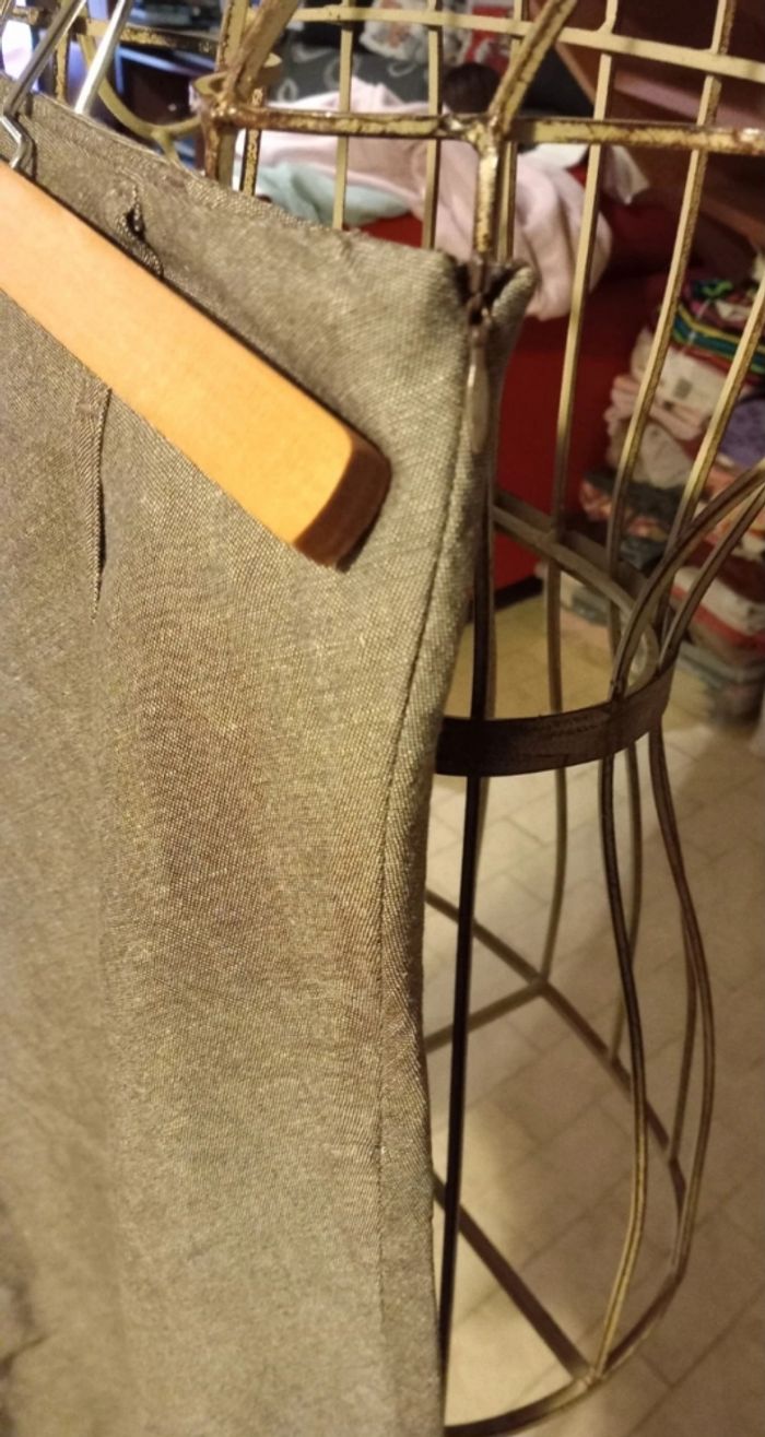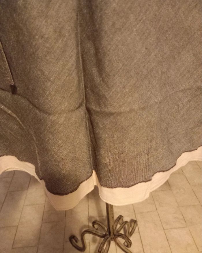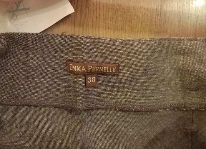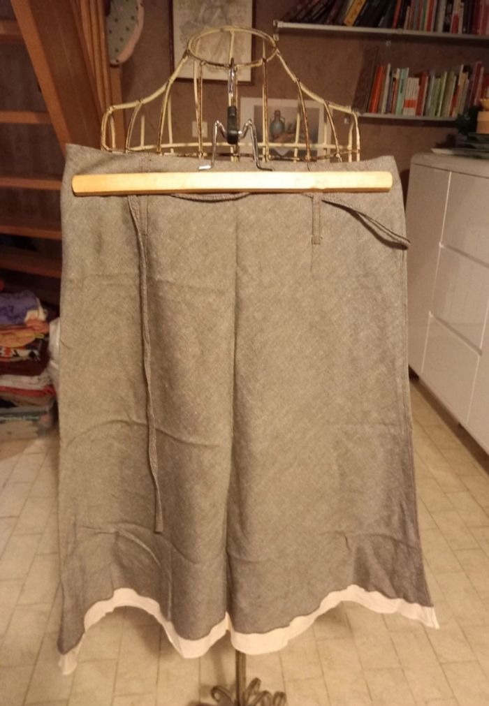 Jupe légère grise avec décoration rose pâle en bas de la jupe Lien en tissu à la ceinture Attache sur le côté par un zip invisible Marque : Emma Pernelle De nombreux autres vêtements adultes diverses tailles dans ma boutique.