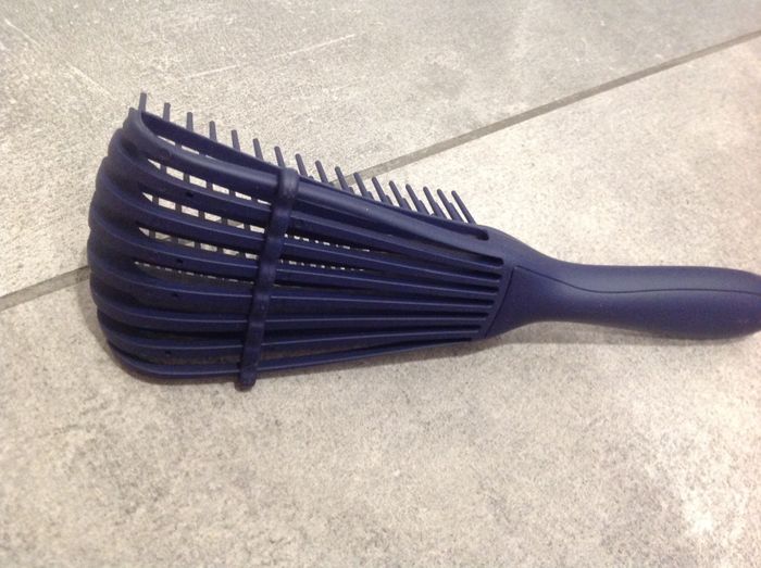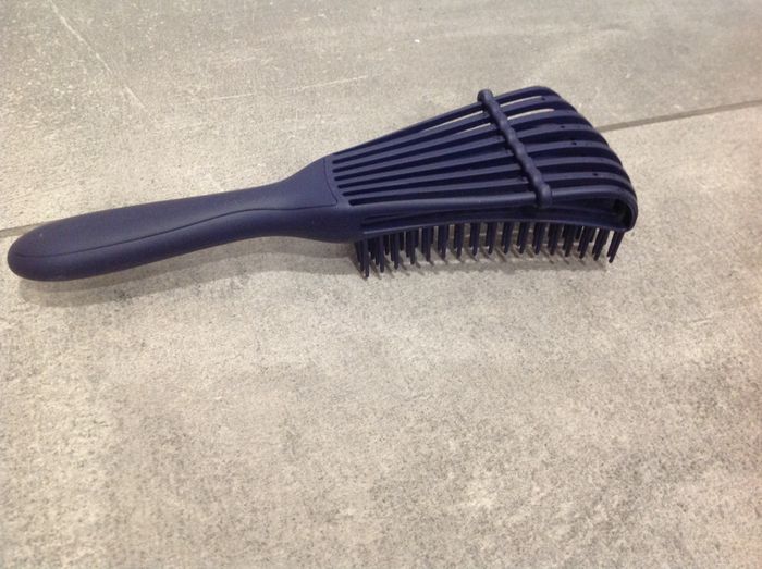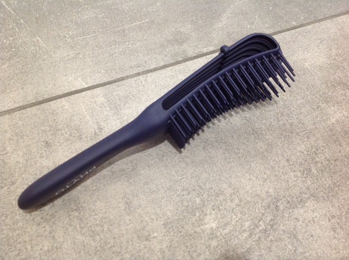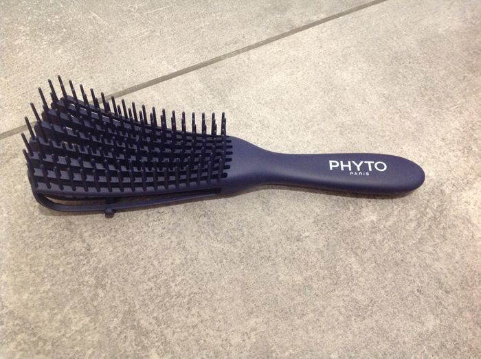 Brosse à cheveux spécialement conçue pour les boucles, de couleur bleu marine, de marque Phyto. Convient à tous les types de boucles grâce à sa barre réglable. Démêle en douceur. Ne casse pas les cheveux. Permet de définir les boucles. Matière : plastique. Dimensions : 24 cm de longueur. Etat neuf.