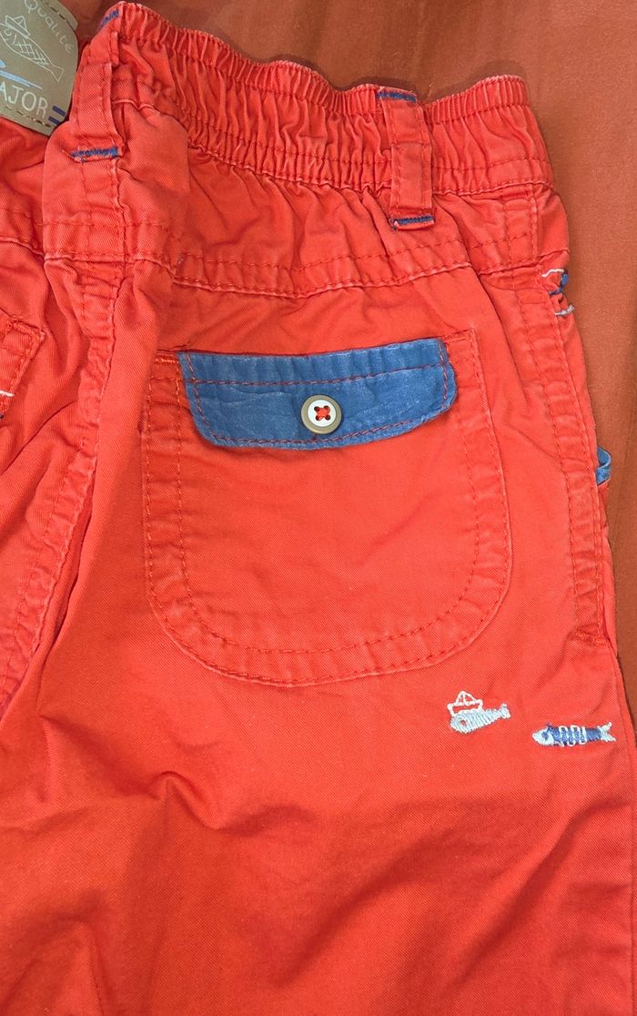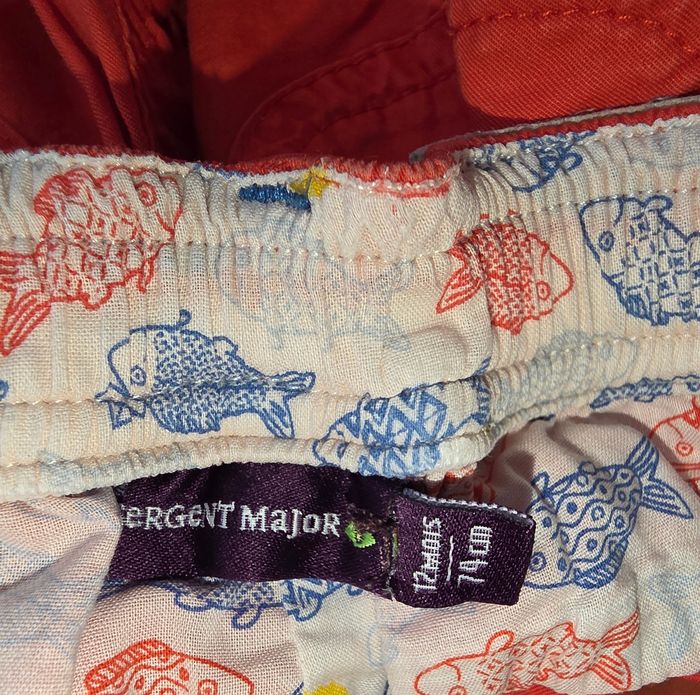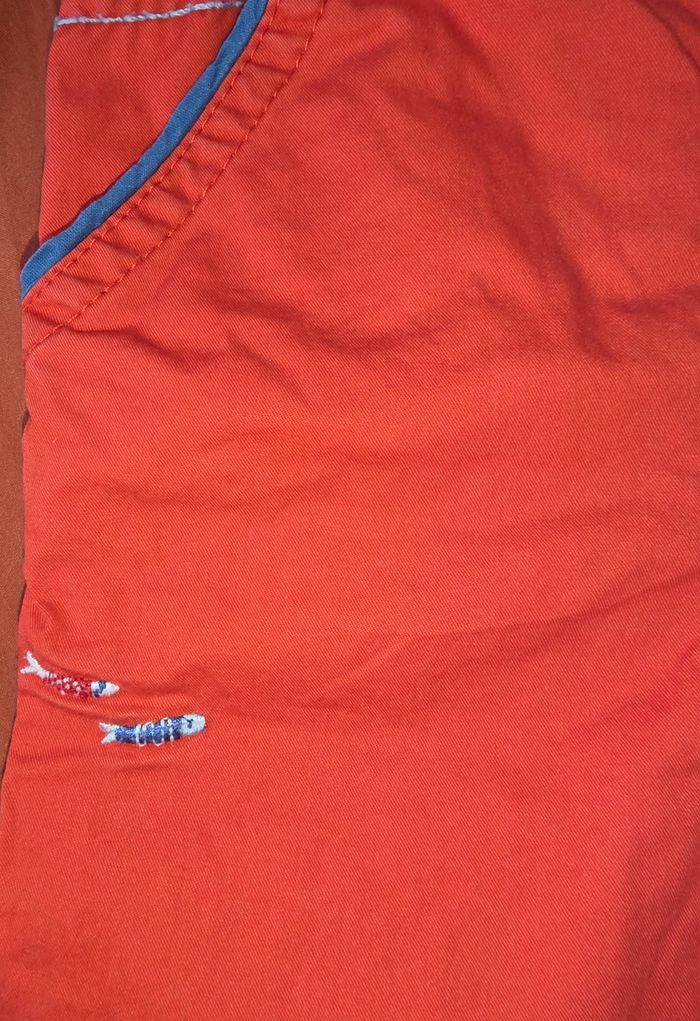 Pantalon rouge a motifs petit poissons. Marque sergent major en 12 mois. Toute petite tâche ( voir photo). 100% coton. Remises sur lots activé ✅️ De plus, moins de frais de livraison 🪙📦 Envois rapide et soigné ! 🚚