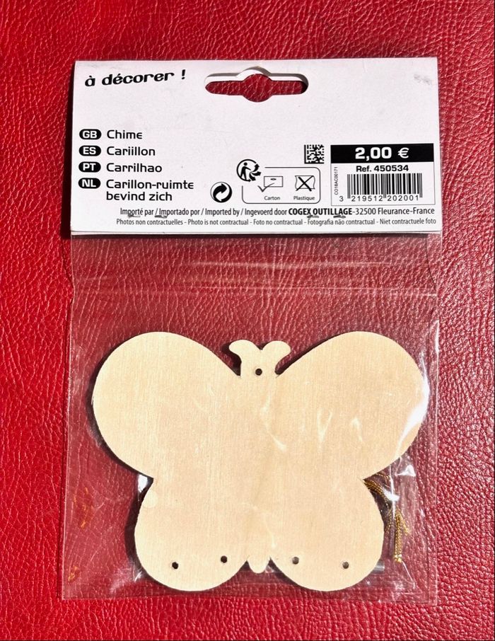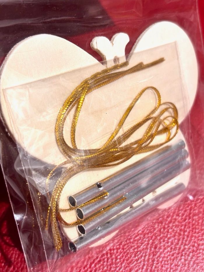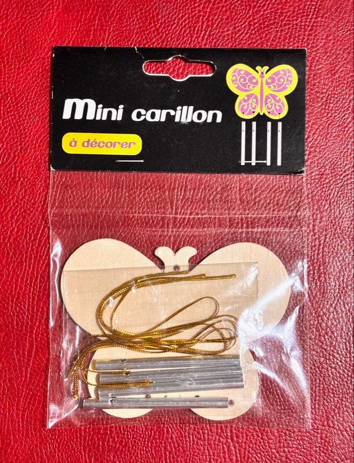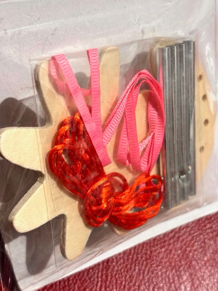 Lot 2 kits de carillons en bois à assembler et décorer Forme papillon en bois (10.6 x 8.2cm épaisseur 2mm) avec fils dorés Forme fleur en bois (11 x 7.4cm épaisseur 3mm) avec ruban rose et fils rouge Neuf, sans utilisation. ⛔️ Prix FIXES, NON négociables 🚨 👏🏻 Réductions sur les lots 👍🏻 #carillon #papillon #fleur #scrapbooking #loisirscreatifs