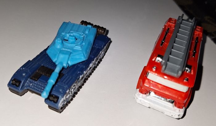 Lot de 2 petits voitures : un char + un camion de pompier - photo numéro 1