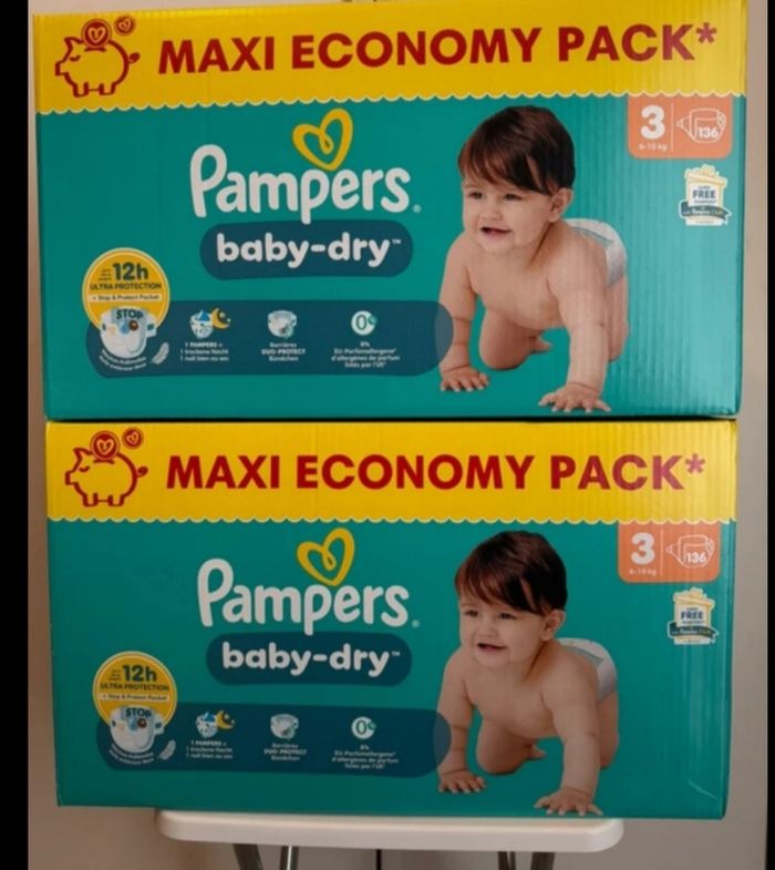 2 cartons de couches Pampers baby-dry T3 taille 3 jamais ouvert
