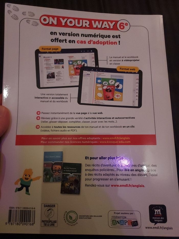 📘 Workbook On Your Way 6e – Anglais – Nouveau programme 2025 – Comme neuf Je vends un workbook d’anglais On Your Way 6e, nouveau programme 2025, édité par Maison des Langues. État : ✔️ Comme neuf ✔️ Aucune écriture, aucune page complétée ✔️ Couverture propre, intérieur impeccable ➡️ Jamais utilisé par un élève Contenu : Workbook d’accompagnement du manuel On Your Way 6e, niveau Cycle 3 – A1 / A1+, parfaitement conforme aux programmes 2025. Idéal pour : élèves de 6e enseignants d’anglais parents souhaitant un support scolaire récent et à jour Éditeur : Maison des Langues (EMDL) – collection reconnue en anglais scolaire. Prix : 8 € Remise en main propre uniquement : 📍 Le Mans – statue Léon Bollée (à côté de chez moi) ❌ Pas d’envoi 📩 N’hésite pas à me contacter pour plus d’informations ou pour convenir d’un rendez-vous. Premier arrivé, premier servi !