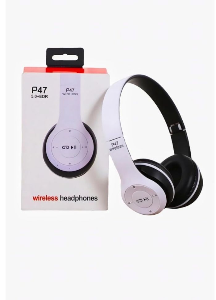 Casque sans fil Bluetooth P47, Blanc, conception circum-auriculaire avec technologie EDR 5.0, son stéréo, commandes multimédias