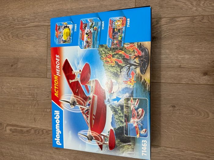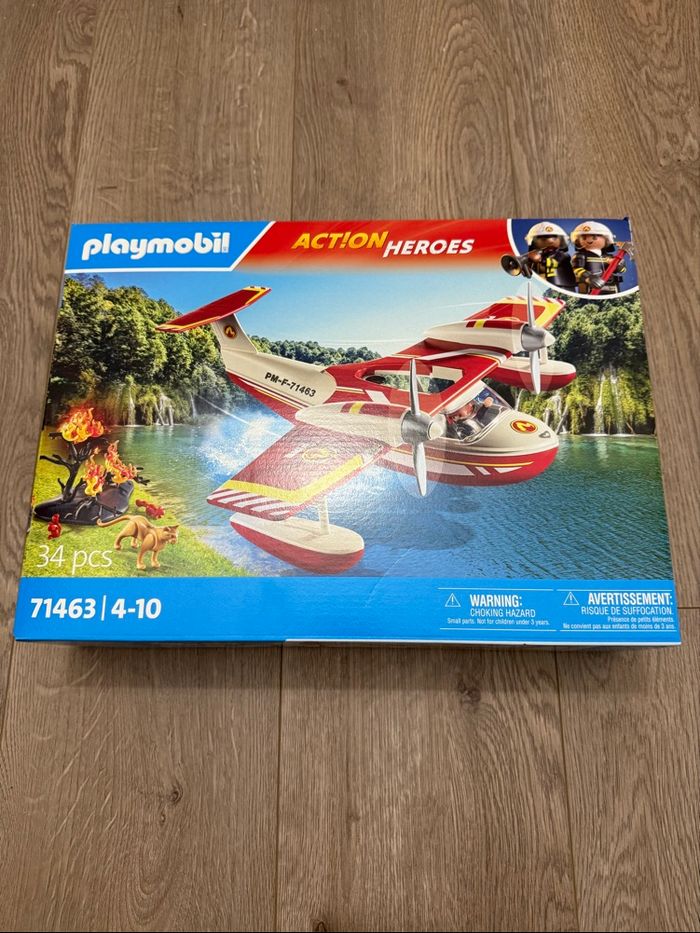 Produits neufs hydravion Playmobil avec des figurines et d’autres pièces. Vous pouvez Mettre de l’eau dans l’avion pour qu’il éteigne le feu.