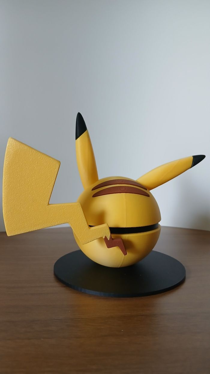 Impression 3D en PLA. La pokeball fait 7cm de diamètre elle ne s’ouvre pas. Modèle N3D