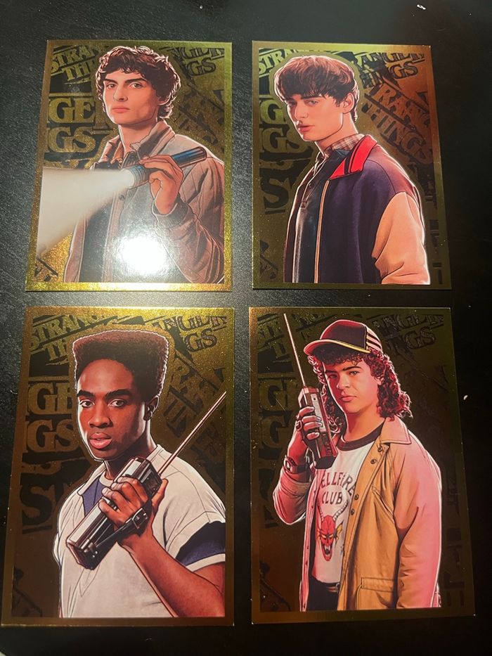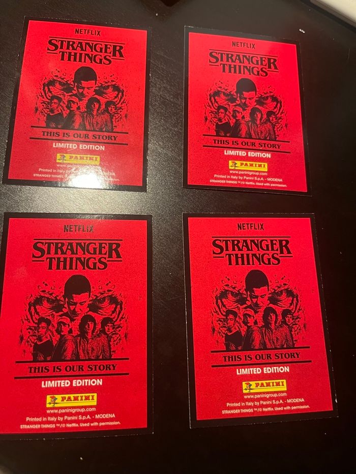 Cartes éditions limitées Stranger Things Panini En excellent état 4 cartes : Will, Mike, Lucas, Dustin Envoi rapide et soigné
