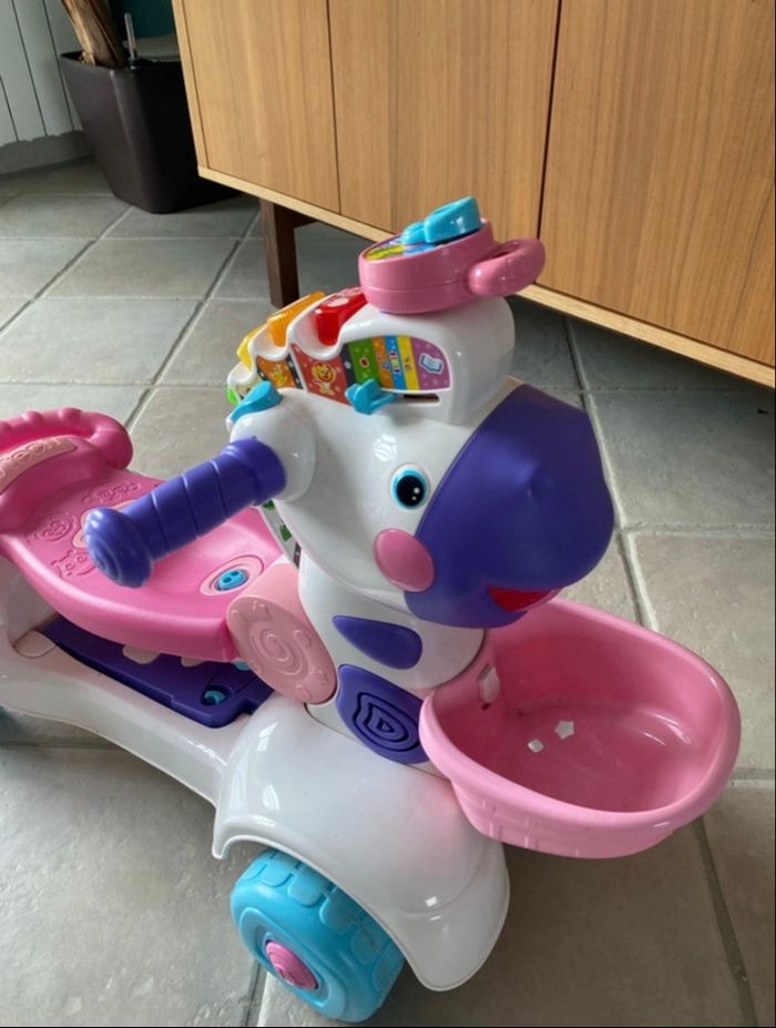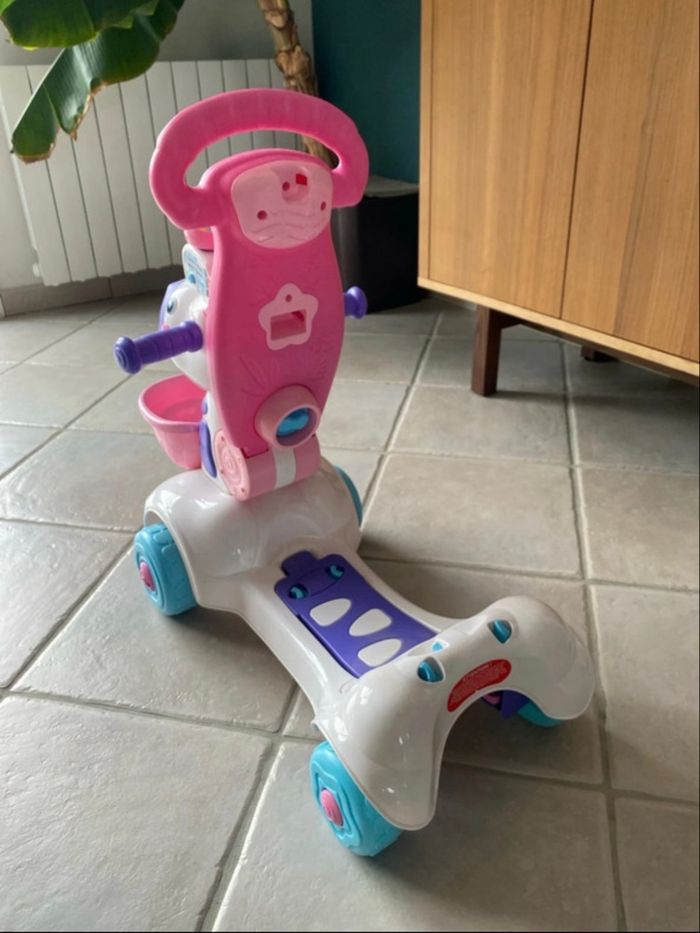 Trotteur, trottinette ou porteur. Evolutif avec l’âge de bebe. Musicale