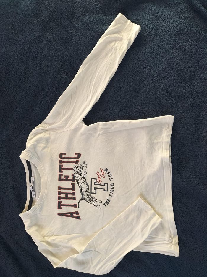 #tshirt #mancheslongues blanc avec #tigre et inscription.'tiger team'.