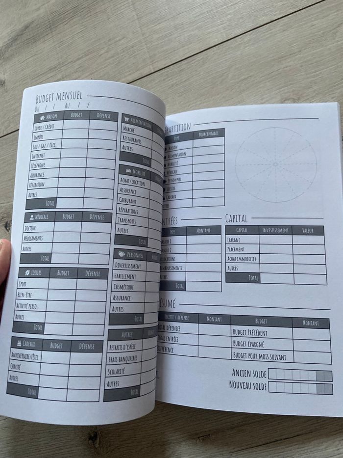 Livre ou cahier de compte neuf jamais utilisé pour faire ton budget avec carnet piur enveloppe budget neuf également ouvert juste pour la photo