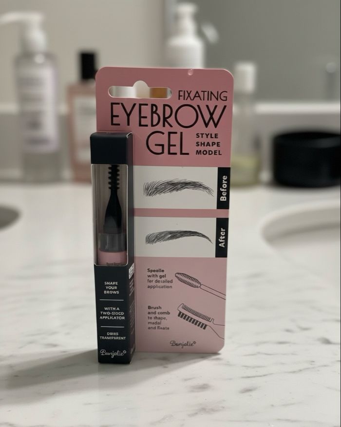 Fixating Eyebrow Gel de la marque Bonjolie. C'est l'outil indispensable pour discipliner, donner du style et modeler vos sourcils avec précision.