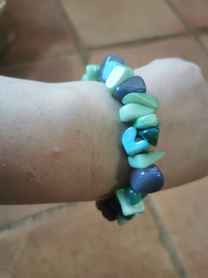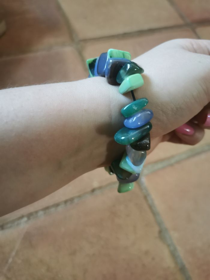 Bracelet élastique de pierres bleues et vertes - photo numéro 4