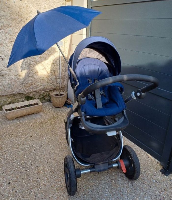 Je vends une pousette de type Crusi et Trailz avec sa nacelle qui comprend un matelas, une ombrelle. Mais également une protection de pluie et une moustiquaire. Elle est de couleur bleu marine et peut aussi se transformer avec un motif à carreau comme vous pourrez le voir si les différents photos ci-dessus. A venir chercher sur place dans un village près de Mantes la Jolie. Le tout est en bon état et est lavé