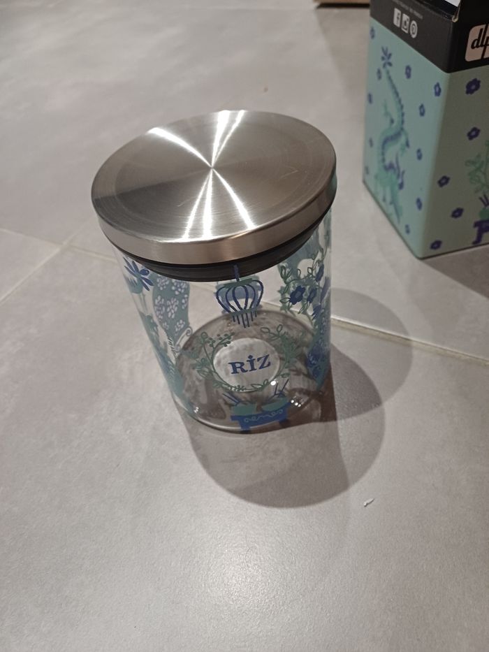 Bocal a riz en verre Derrière la porte Emballé dans son emballage d'origine Neuf Maison non fumeur, premiere main, pas d'animaux