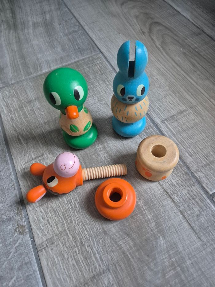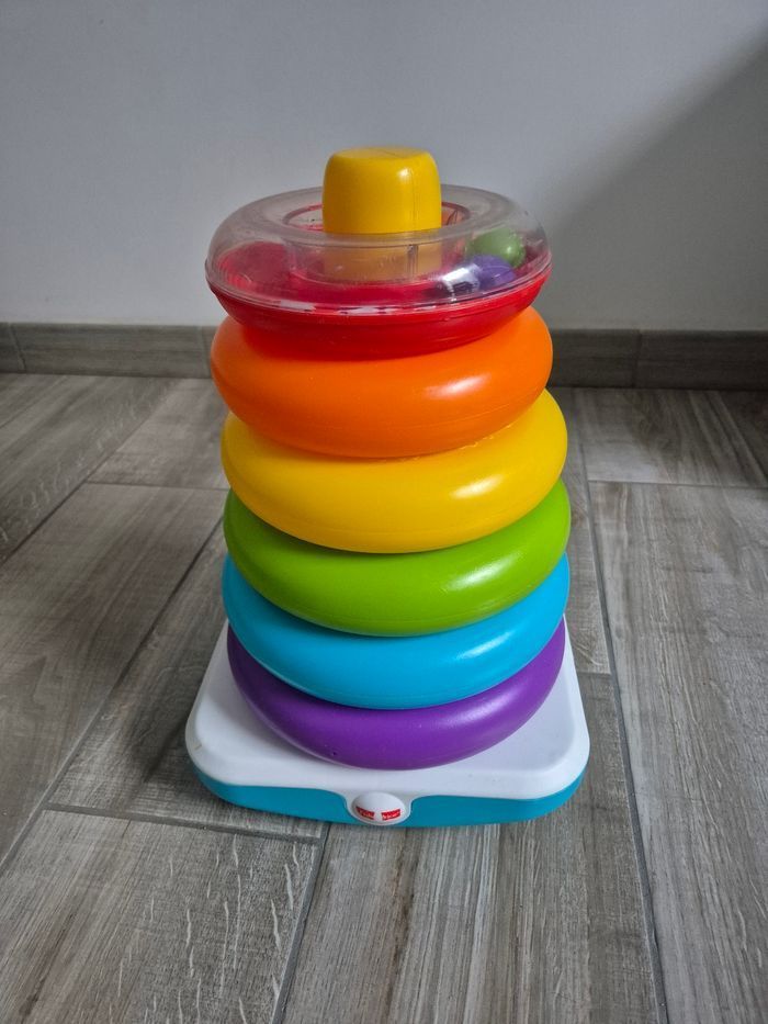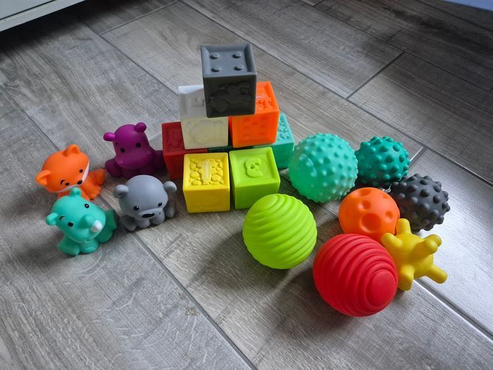 Lot avec plusieurs jouets premier âge. Certains ont bien servi mais ils peuvent encore rendre des enfants heureux - La ferme à toucher : carte avec texture, cartes en bon état juste la boîte un peu fatiguée - Jeu à empiler, l'une des tiges est un peu fatiguée car tige avec fil élastique pour ne pas blesser l'enfant si il tombe dessus, vertbaudet - Lot cube balle et animaux sensoriel manque la balle blanche, infantino - jeu d'éveil Wally blue, jeu de cache cache avec les petits poisson qui font des bruits différents avec un miroir, done by deer - hochet - Livre avec pouet à suspendre - Lot de 3 animaux à visser, djeco - Boulier de motricité - Tour à empiler géante, fisher price - jeu de tape tape, little dutch - Jeu de toboggan à voiture, vertbaudet
